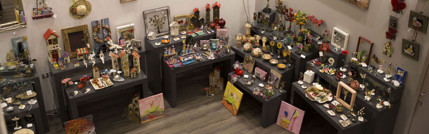 Χειροποίητα επιδαπέδια κι επιτραπέζια αντικείμενα, όπως: Καθρέπτες, ρολόγια, φωτιστικά, διακοσμητικά κ.ά. είδη δώρων, κατασκευασμένα από διάφορα υλικά ( μέταλλο, γυαλί, ξύλο, πηλό) με πολύ μεράκι από κορυφαίους Έλληνες καλλιτέχνες!