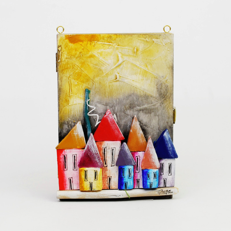 κλειδοθηκη κλειστη, κλειδοθηκη με σπιτακια, ξυλινη κλειδοθηκη χειροποιητη
