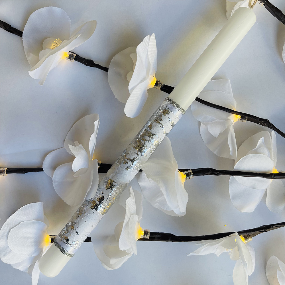 Χειροποίητη Πασχαλινή Λαμπάδα Με Ασημί Λεπτομέρειες