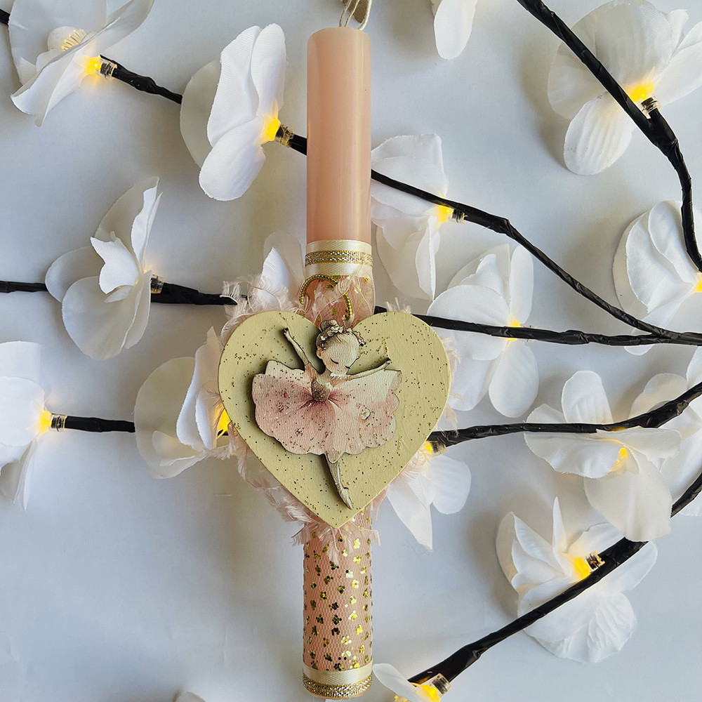 Χειροποίητη Πασχαλινή Λαμπάδα “Μπαλαρίνα Με Καρδιά”