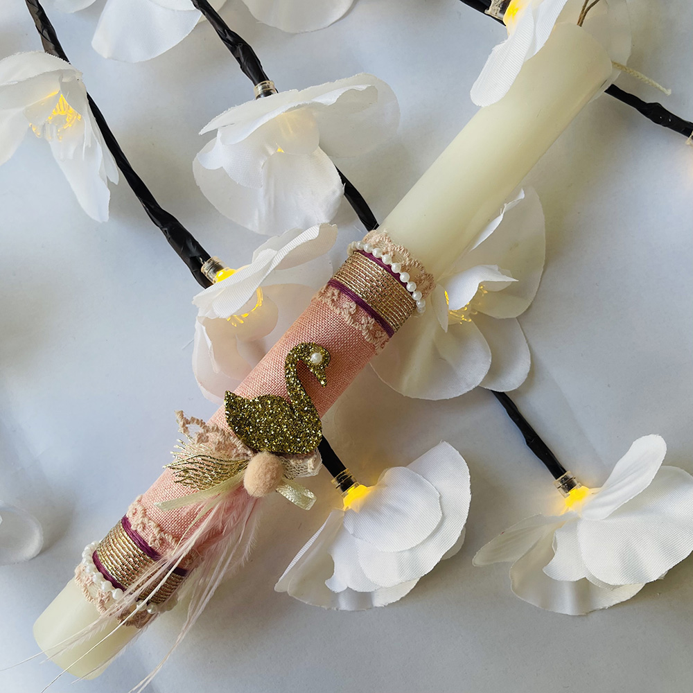 Χειροποίητη Πασχαλινή Λαμπάδα Με Χρυσό Κύκνο