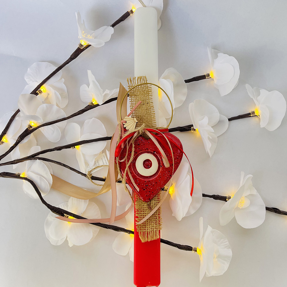 Χειροποίητη Πασχαλινή Λαμπάδα Με Κόκκινη Κεραμική Καρδιά