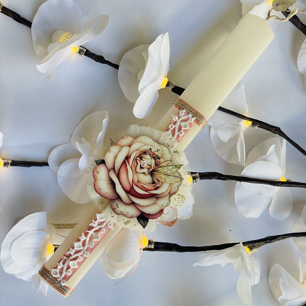 Χειροποίητη Πασχαλινή Λαμπάδα Με “Vintage Τριαντάφυλλο”