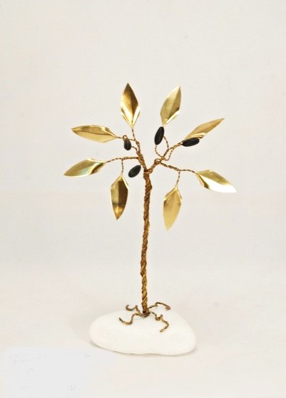 Χειροποίητο δένδρο ελιάς με χρυσά φύλλα από αλπακά πάνω σε πέτρα. Ένα πολύ όμορφο διακοσμητικό με τον συμβολικό χαρακτήρα της ελιάς που μπορεί να τοποθετηθεί σε όλους τους χώρους του σπιτιού ή του γραφείου σας.