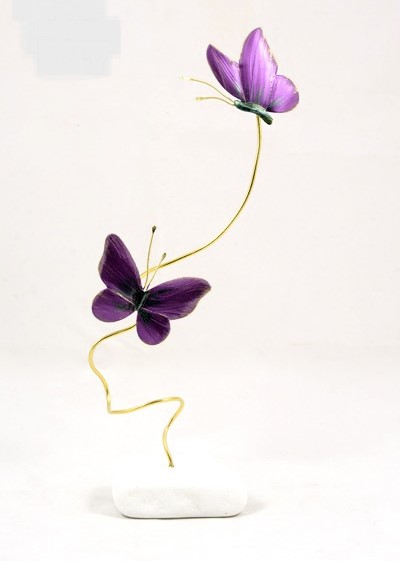 Χειροποίητο διακοσμητικό διπλή πεταλούδα με μεταλλικές λεπτομέρειες,μωβ οξείδωση και κομψό σχεδιασμό.