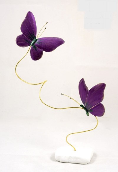 Χειροποίητο διακοσμητικό διπλή πεταλούδα με μεταλλικές λεπτομέρειες,μωβ οξείδωση και κομψό σχεδιασμό.