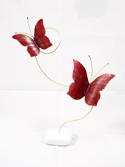 Χειροποιητο διακοσμητικο διπλη πεταλουδα με μεταλλικες λεπτομερειες,κοκκινη οξειδωση και κομψο σχεδιασμο.
