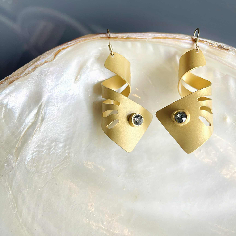 Εντυπωσιακά, μοντέρνα χειροποίητα σκουλαρίκια από ορείχαλκο σε χρυσό χρώμα. Ένα κόσμημα για ξεχωριστές εμφανίσεις με στυλ !!!